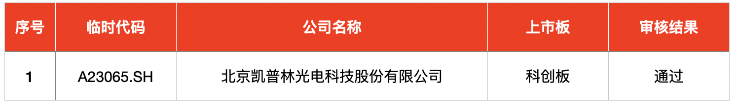 在A股IPO审核方面,本周上交所和北交所均有新股上会。上交所方面,北京凯普林光电科技股份有限公司(简称“凯普林”)获得通过。北交所方面,时隔4个月重启IPO审核,本周安排两场审议会议,审议成都成电光信科技股份有限公司(简称“成电光信”)和浙江太湖远大新材料股份有限公司(简称“太湖远大”)的发行申请。