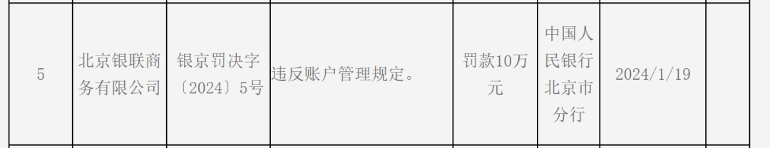 值得注意的是,中国银联旗下的银联商务在2024年1月19日也因违反账户管理规定被罚10万元。而在2022年8月31日,银联商务更因包括违反商户管理规定、清算管理规定、条码支付业务管理规定等在内的9项违法行为,被警告并没收违法所得约15.72万元,同时被罚款6516万元,成为当年非银支付机构的最大罚单。