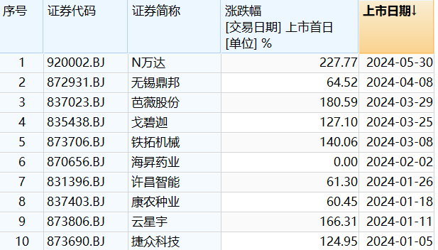 万达轴承上市首日的表现不仅令人瞩目,还刷新了北交所年内新股首日涨幅的记录。据统计,年内北交所共有10只新股上市,而万达轴承的首日涨幅超过了此前的芭薇股份,成为年内涨幅最高的新股。然而,尽管万达轴承的上市备受期待,但其并未能引领北交所“920行情”,北交所行情并未得到明显提振。