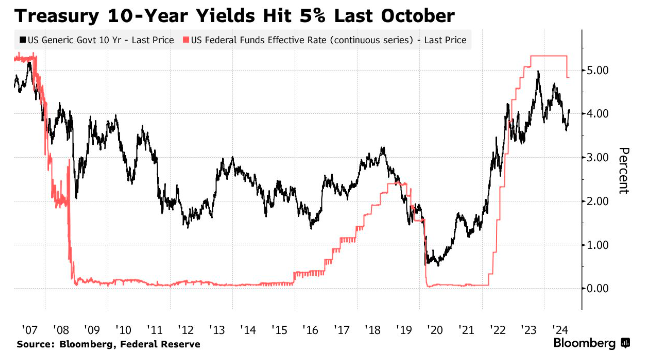 回顾历史,上一次10年期美债收益率触及5%大关还要追溯到去年10月,当时该基准收益率创下了自2007年以来的最高水平。然而,在美联储已经步入降息周期的背景下,Husain依然作出这一预测,似乎并未将美联储的降息预期放在眼里。