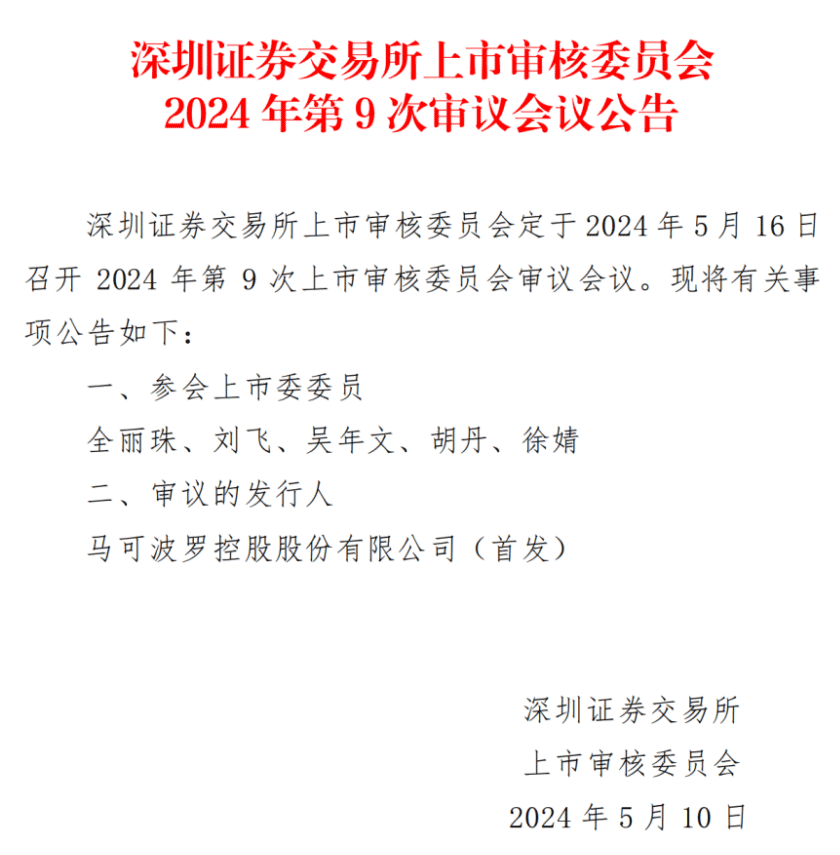 沪深交易所于5月10日同日宣布启动首场上市委审议会议,审议两家公司的发行上市申请,标志着新“国九条”系列配套新规正式实施,旨在提高上市公司质量。