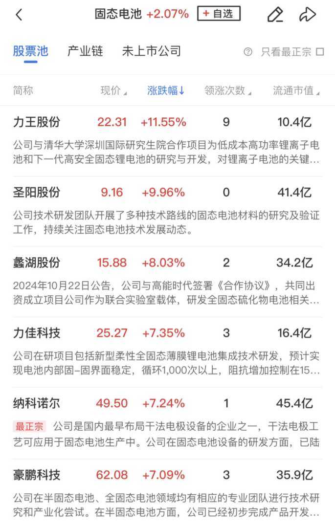 固态电池概念同样在盘中活跃,圣阳股份涨停,力王股份等个股涨幅超过10%。消息面上,北京大学材料科学与工程学院庞全全团队开发了一种新型玻璃相硫化物固态电解质材料,并研制出具有优异快充性能和超长循环寿命的全固态锂硫电池。