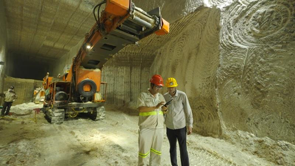 目前,亚钾国际已拥有老挝甘蒙省东泰矿区及彭下-农波矿区两个钾盐采矿区,钾盐矿总面积达263.3平方公里,实现超过10亿吨氯化钾储量,超过我国目前钾盐资源储量,进一步巩固了其在亚洲钾盐资源量上的优势地位。记者实地探访了东泰矿区井下250米深处的采场,见证了高效作业机器设备的运作,开采后的钾盐矿区如同冰雪世界。