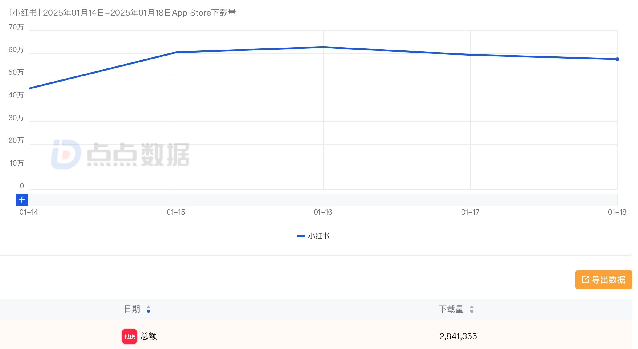 值得注意的是,尽管海外用户涌入小红书的数量庞大,但实际新增用户量级并未如外界所设想的那样惊人。据点点数据监测显示,在登顶美区应用商店的前五天时间里,小红书在海外市场上吸纳的苹果新用户约为284.14万。这一数字对于拥有超过1亿日活、3亿月活的小红书而言,并不算太大。然而,真正让小红书获益最大的,或许是它在舆论场上的声量。