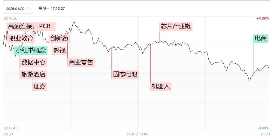 板块方面,铜缆高速连接、影视、服装、电池等板块表现抢眼,涨幅居前。而电商、小红书概念、草甘膦、煤炭等板块则表现不佳,跌幅居前。截至收盘,沪指微涨0.08%,深成指上涨0.94%,创业板指更是大涨1.81%,成功收复2100点。