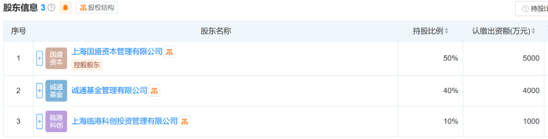 工商注册信息显示,国智投成立于2024年,隶属于上海国盛集团,注册资本为1亿元。其股权结构清晰,上海国盛资本与诚通基金分别持有50%与40%的股份。