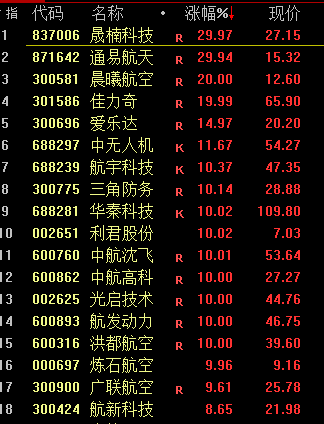 军工板块表现持续强劲,晨曦航空、中航沈飞、利君股份、炼石航空等个股涨停,国防科技工业备受市场关注。