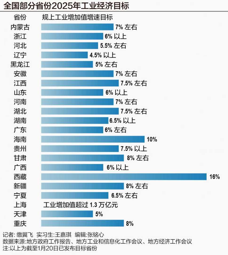 2025年,各地围绕工业稳增长展开部署,明确增速目标,兼顾传统产业转型升级、新兴产业培育壮大及未来产业前瞻布局。国家统计局数据显示2024年工业增加值增长5.8%,22省份公布工业增长目标,赛迪研究院专家提醒未来产业布局需精准。