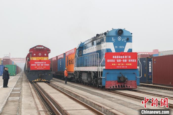 图为南昌国际陆港“昌厦一港通”铁海联运班列首发现场,这一举措进一步提升了江西外贸的运输效率和便利性。(资料图) 刘力鑫摄