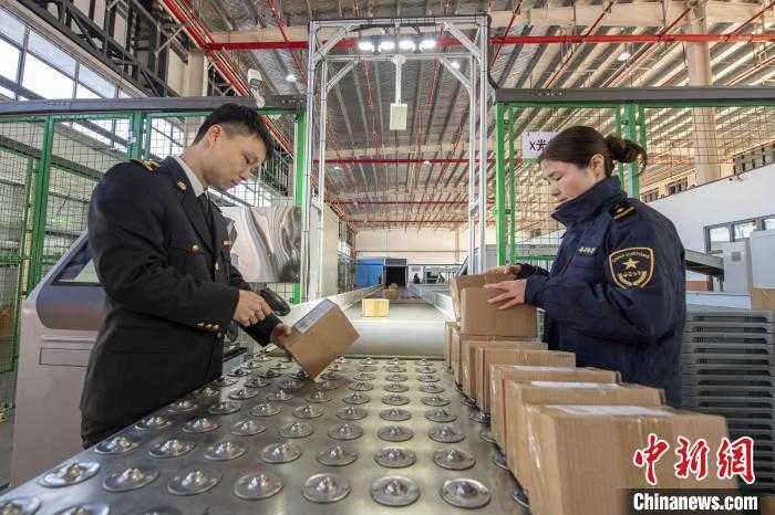 1月10日,江西新余国际陆港海关工作人员正在为跨境电商产品办理通关业务,展现了江西在优化营商环境方面的积极成果。赵春亮摄