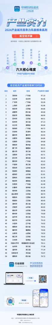 2024低空经济产业城市竞争力TOP50排行榜发布