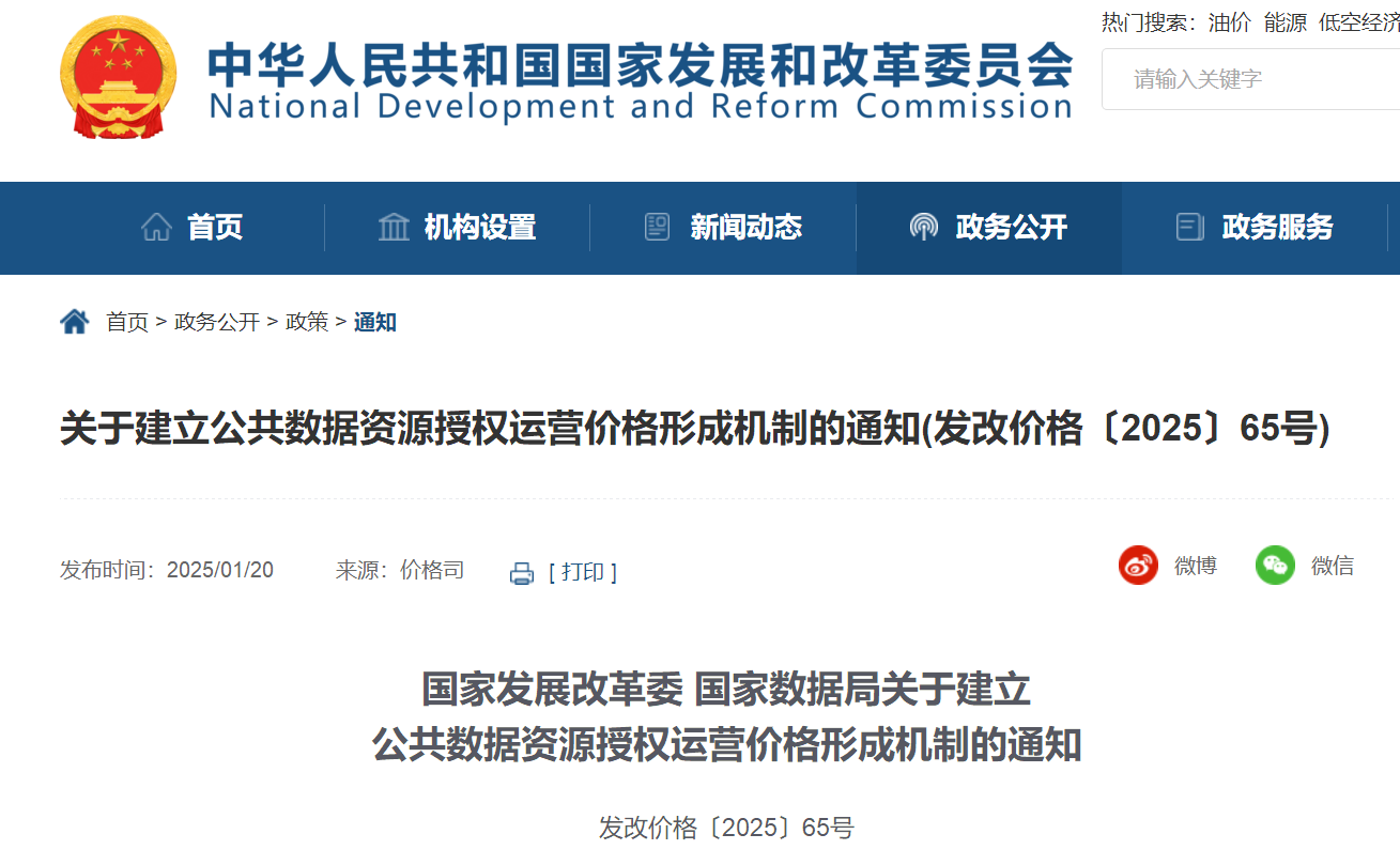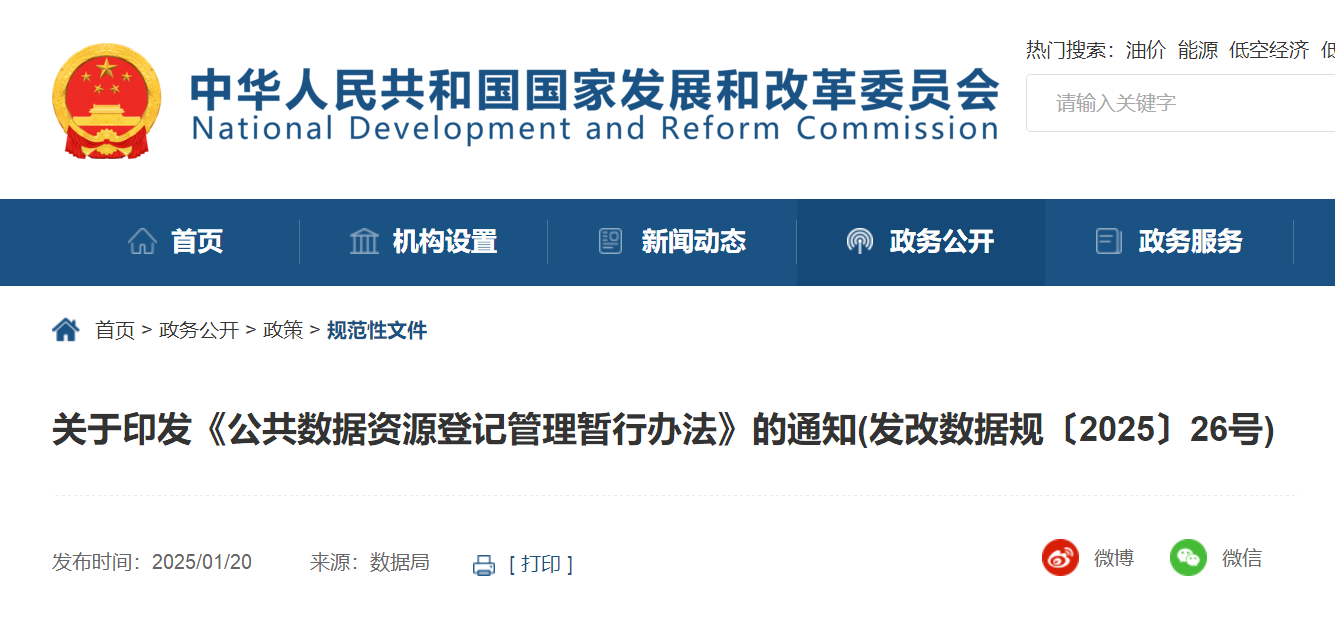2025年1月20日,国家发展改革委与国家数据局携手发布了一系列关于公共数据资源管理的重要政策文件,包括《公共数据资源登记管理暂行办法》、《公共数据资源授权运营实施规范(试行)》以及《关于建立公共数据资源授权运营价格形成机制的通知》(以下简称《管理办法》、《实施规范》和《通知》)。