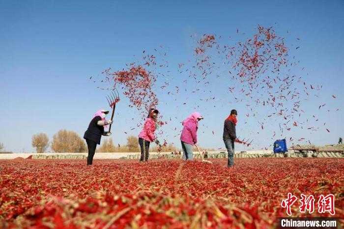 资料图显示,2023年12月3日,金塔县的“小辣椒”作物喜获丰收,展现了农业生产的勃勃生机。(魏丹摄)