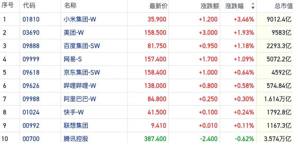 市场热点方面,科技股成为引领市场的关键力量,市场情绪显著偏向多头。具体来看,大型科技股继续展现强劲势头,小米集团涨幅达到3.46%,有望再度刷新历史新高;美团亦不甘示弱,上涨近2%;百度、网易涨幅均超过1%;京东、阿里巴巴、快手等科技巨头也均有不同程度的上涨。