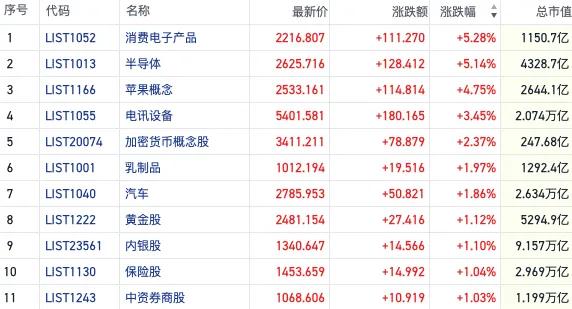 然而,并非所有板块都能分享市场的喜悦。加密货币概念板块短线见顶回落,稀土、高铁基建等板块则表现低迷。