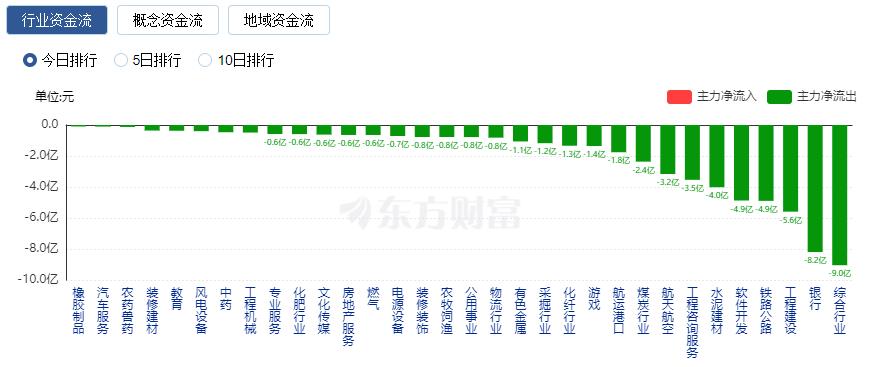 在净流出方面,综合行业、银行等行业净流出排名靠前,但整体对市场影响有限。