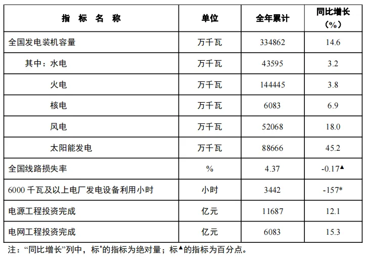 国家能源局1月21日发布数据,截至2024年12月底,全国累计发电装机容量约33.5亿千瓦,同比增长14.6%。其中,太阳能发电装机容量约8.9亿千瓦,同比增长45.2%;风电装机容量约5.2亿千瓦,同比增长18.0%。