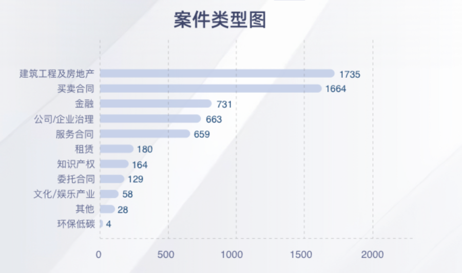 2024年,贸仲委裁决的案件争议类型呈现多元化特点,建设工程及房地产类纠纷、买卖合同类纠纷、金融类纠纷位居前三。具体而言,建设工程及房地产类纠纷达1745件,买卖合同类纠纷为1664件,而金融类纠纷则以731件的数量跃居第三位。值得注意的是,与2023年相比,金融类纠纷的案件数量实现了翻倍增长,从362件跃升至731件,排名也大幅上升至第三位。
