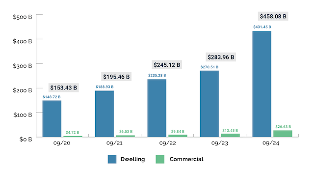 据FAIR计划官网数据显示,截至去年9月,FAIR计划承保总额已达4580亿美元,是2020年9月的三倍,且较2023年9月激增61.3%。