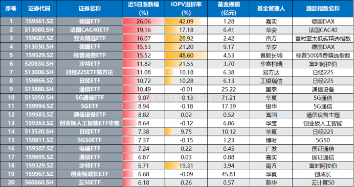 备注:近五日涨幅领先的ETF基金(截至1月22日收盘)