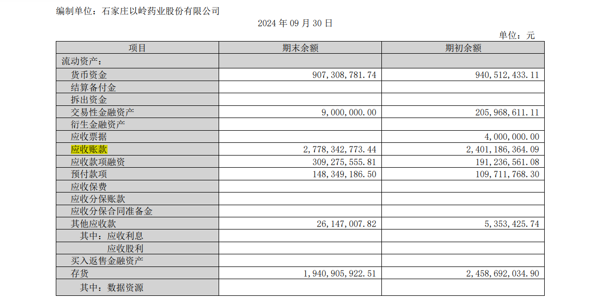 公司存货与应收账款情况截图来源:以岭药业2024年三季报