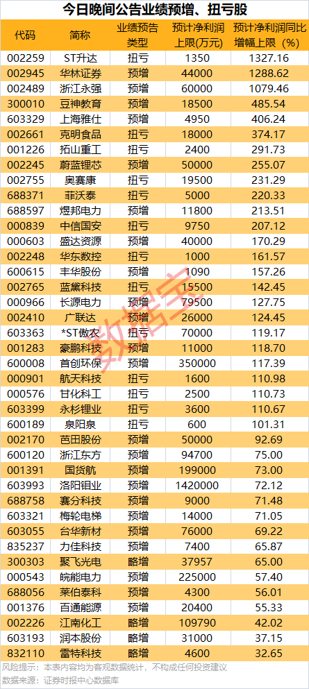 截至18时30分,今日晚间已有40家公司发布业绩预喜公告(含预增、扭亏)。以预计净利润同比增幅上限统计,25家公司预计净利润最大增幅超过100%,显示出上市公司整体业绩的稳健增长态势。