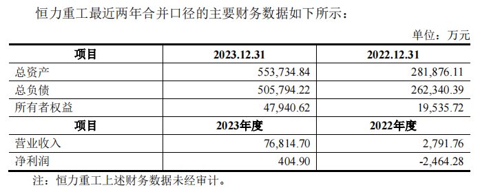 恒力重工是恒力集团2022年7月跨行业挺进船舶制造业的主要载体,重点发展船舶建造、海洋工程、发动机、精密铸造等板块。交易预案显示,2022年、2023年,恒力重工未经审计的营业收入分别为2791.76万元、7.68亿元;净利润分别为-2464.28万元、404.90万元。虽然恒力重工目前盈利水平相对较低,但公司已确定排产新造船舶达140艘,货值约为108亿美元,预计随着2024年船舶制造业务逐渐步入正轨,盈利能力将大幅度提升。