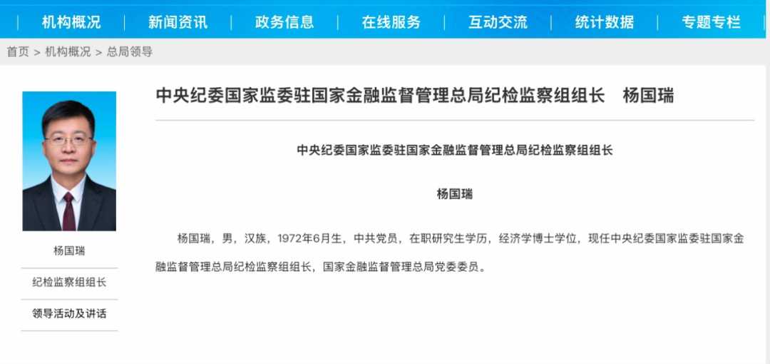 国家金融监管总局迎来新领导,杨国瑞就任党委委员