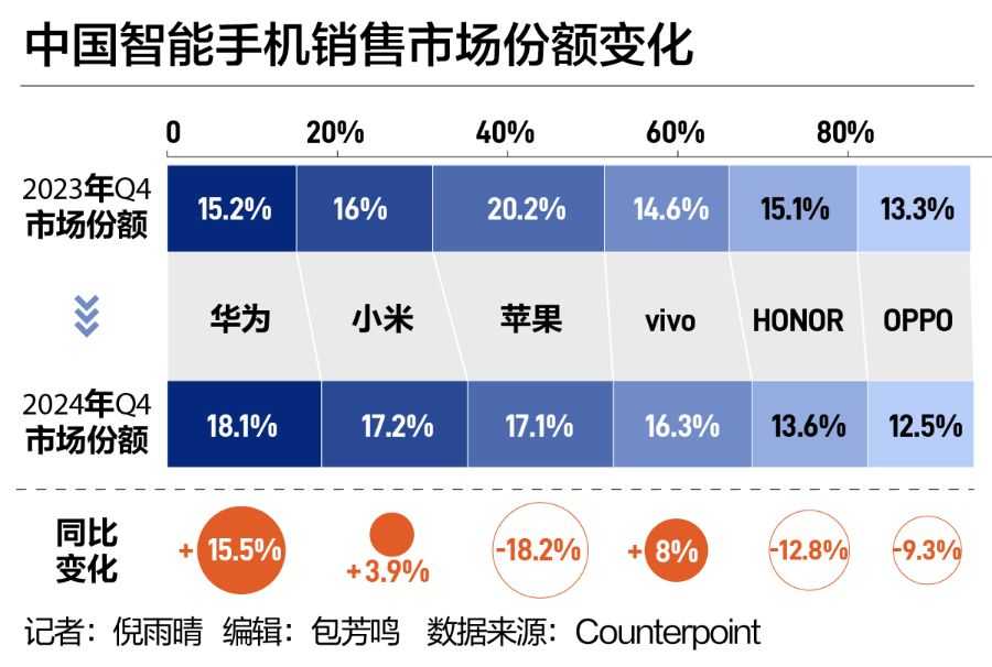 2024年四季度手机市场变局:华为强势回归,苹果承压,荣耀出海寻新路