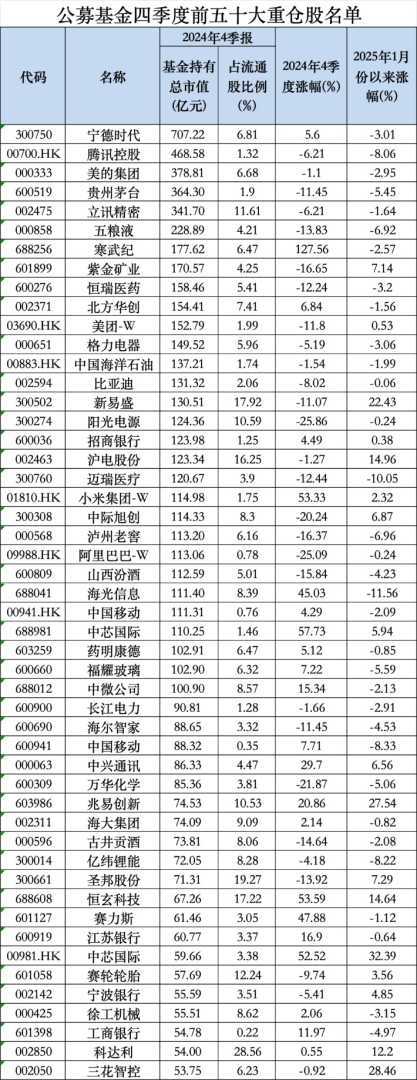 【导读】公募基金2024年四季度重仓股大揭秘:前50大重仓股名单震撼发布
