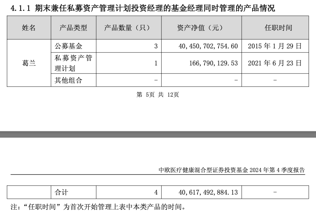 2025年1月22日,中欧基金投资总监葛兰管理的三只公募基金发布了2024年四季报,详细披露了其持仓情况。