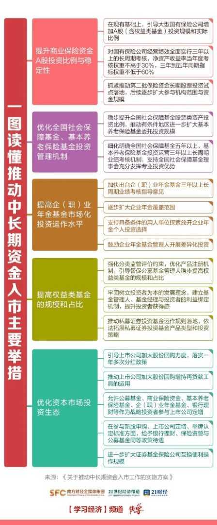 市场分析人士指出,推动中长期资金入市有助于增强资本市场的内在稳定性。中长期资金入市能够优化投资者结构,引导树立价值投资与长期投资理念,降低市场波动性和投机性,进而提振投资者信心,更好地发挥市场资源配置功能。据华创证券非银金融团队测算,若险资、社保基金、养老金、年金权益配置整体提升1个百分点,将带来约4300亿元的增量资金。