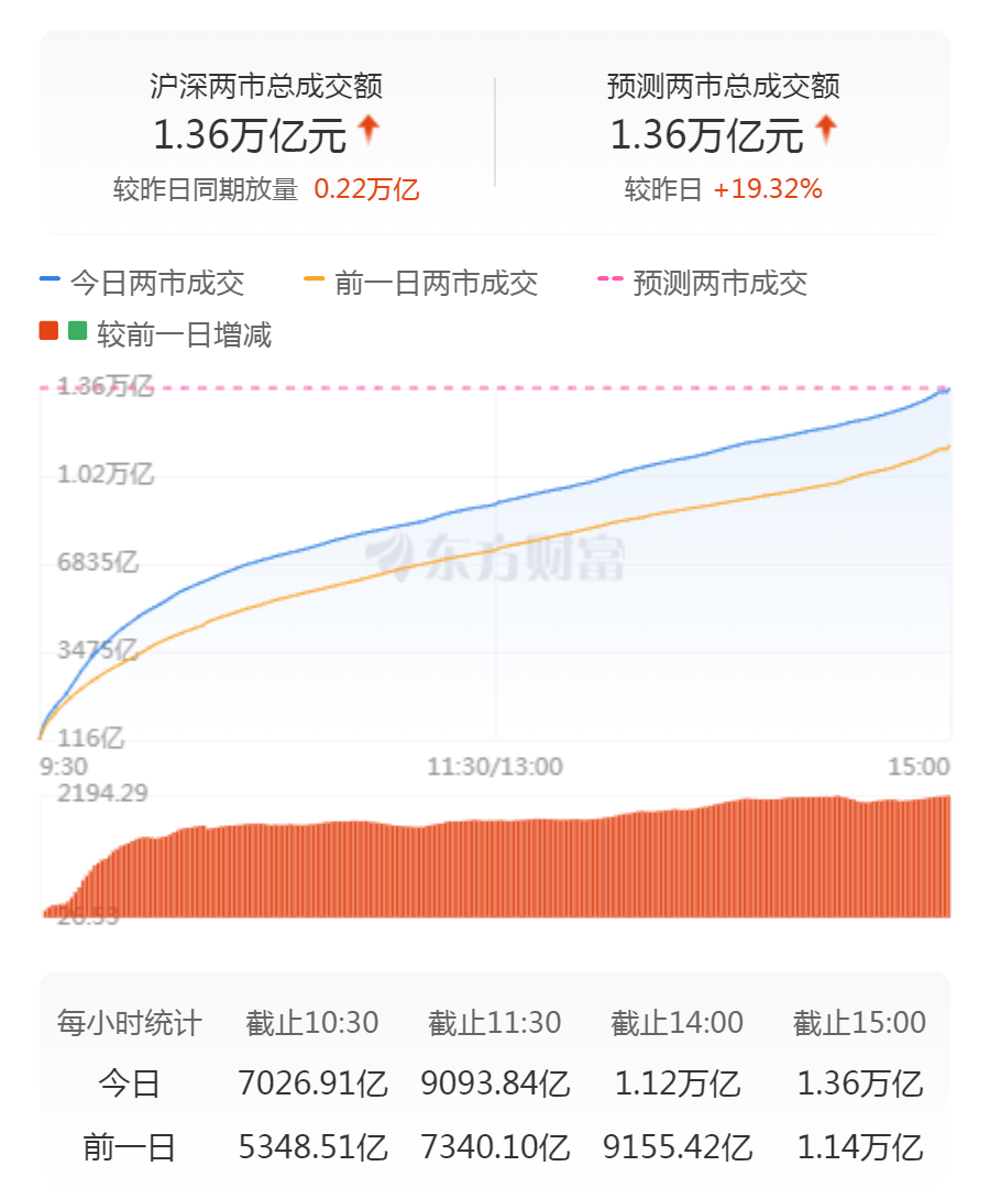 A股三大指数今日经历震荡行情,最终沪指收盘上涨0.51%,报3230.16点;深证成指则下跌0.49%,报收10176.17点;创业板指微跌0.37%,收于2093.31点。沪深两市成交额显著放大,达到13553亿元,较前一交易日增加2194亿元,市场交投活跃。