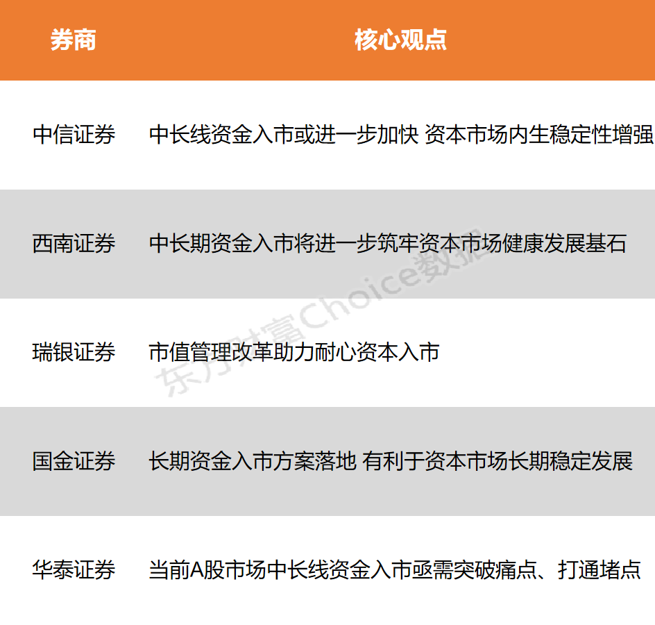 西南证券观点:中长期资金入市将促进资本市场健康发展