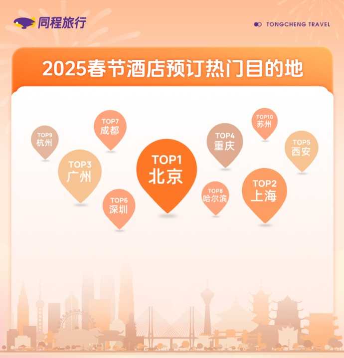 春节期间,北京推出了5600多场文旅活动,并向游客发放非遗漫游地图、庙会地图等,让游客充分领略北京的非遗魅力。苏州则汇聚了全国200多项非遗项目和传承人,举办首届“姑苏年市·新春非遗游园会”,这些活动不仅吸引了大量游客,还带动了当地酒店预订量的上涨。同程旅行数据显示,北京、上海、广州、重庆、西安、深圳、成都、哈尔滨、杭州以及苏州是春节假期国内酒店预订热度最高的目的地。
