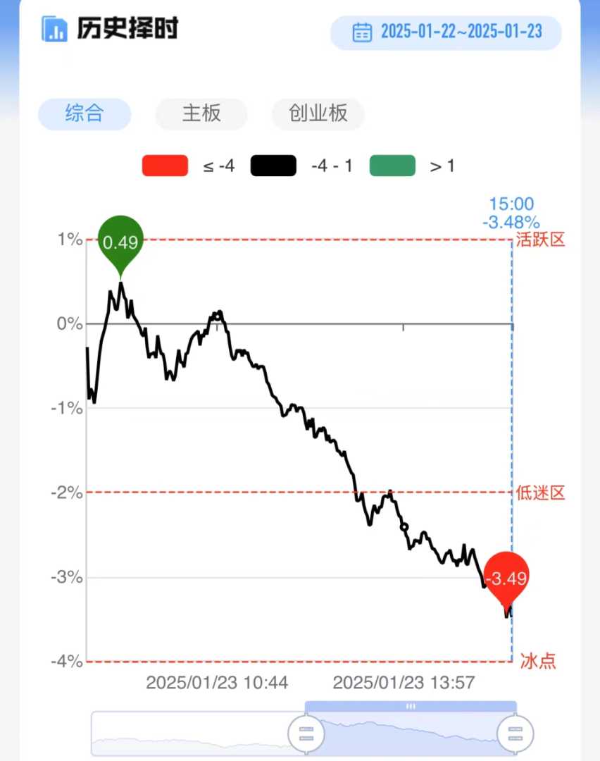财联社1月23日讯,今日市场走势呈现冲高回落格局,三大指数最终涨跌互现。沪深两市全天成交额显著放大至1.36万亿元,较前一交易日激增2194亿元。盘面上,热点分散,个股普遍下跌,超过2700只股票录得负收益。从板块表现来看,大金融板块活跃度较高,保险和银行板块表现抢眼,其中天茂集团成功涨停。AI智能体概念股出现集体反弹,引力传媒亦封涨停。与此同时,机器人概念股走势出现分化,中大力德等十余只个股涨停。而在下跌方面,AI眼镜概念股集体回调,瀛通通讯不幸跌停。截至收盘,沪指微涨0.51%,深成指下跌0.49%,创业板指则下跌0.37%。
