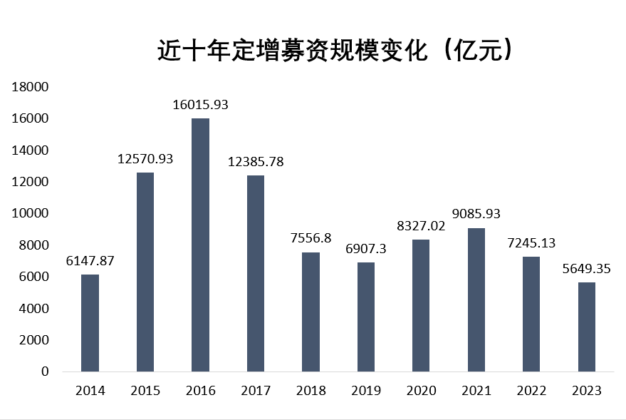 东方财富Choice数据显示,截至2023年12月26日,A股市场年内共有298家上市公司完成了319次定向增发,累计募资金额达到5649.35亿元,这一募资规模创下了近十年来的新低。