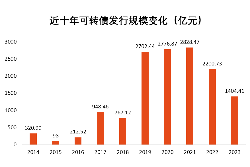 除了定增外,可转债也是A股公司重要的再融资工具。数据显示,截至2023年12月26日,年内共有134家公司发行可转债,实现再融资1404.41亿元,这一金额创下了近五年的新低。