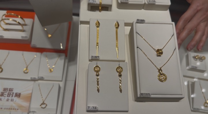 记者在现场了解到,受高金价的影响,春节期间消费者更倾向于选购小克重的黄金饰品。此外,鉴于2025年为蛇年,众多黄金品牌纷纷推出了蕴含蛇元素的特色首饰产品,以满足消费者的独特需求。同时,水贝地区的多家店铺还推出了克重极轻的“金钞”产品,其价格亲民,介于几十元至百元之间,因此成为了不少消费者选购压岁钱的首选。