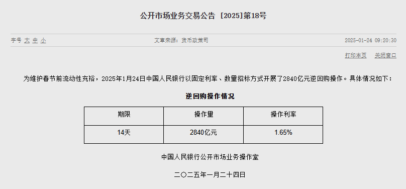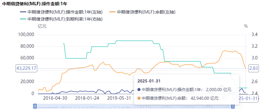 2025年1月24日,为确保银行体系流动性充裕,人民银行实施了一项中期借贷便利(MLF)操作,规模高达2000亿元,期限为1年。此次操作设置了最高投标利率2.20%,最低投标利率1.80%,并最终以2.00%的中标利率成交,中标利率维持不变。操作完成后,中期借贷便利的余额达到了42940亿元。