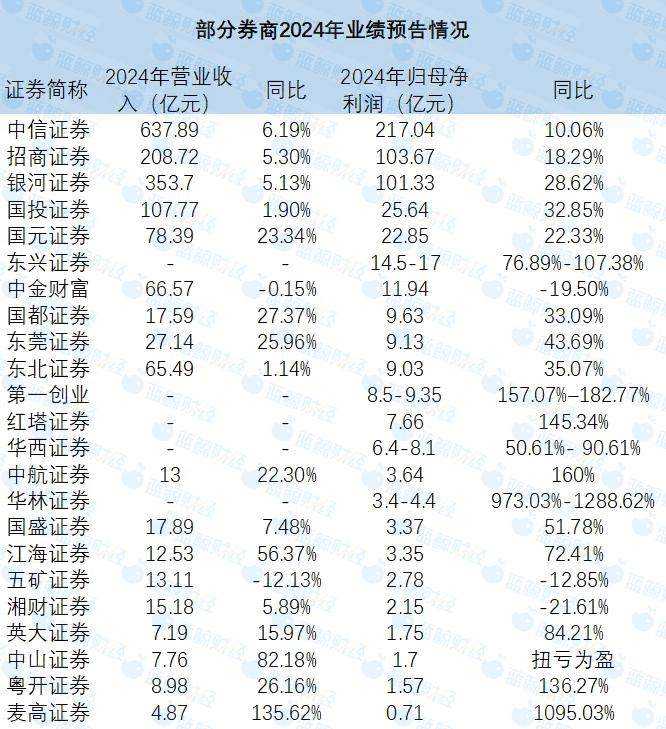 随着券商2024年业绩的陆续揭晓,多家券商非银团队也对去年整体的业绩进行了预测。