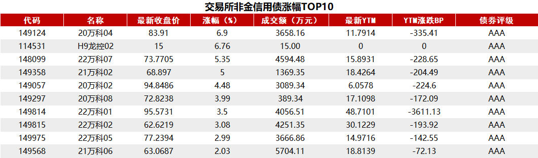 在一级市场方面,今日市场表现出一定的活跃度。而在信用债市场方面,据Choice数据统计显示,交易所市场非金信用债跌幅排行前五的分别是H1碧地03、21万科04、H9龙控01、24临汾02、PR庐城债;而涨幅排行前五的则分别是20万科04、H9龙控02、22万科07、21万科02、20万科02。