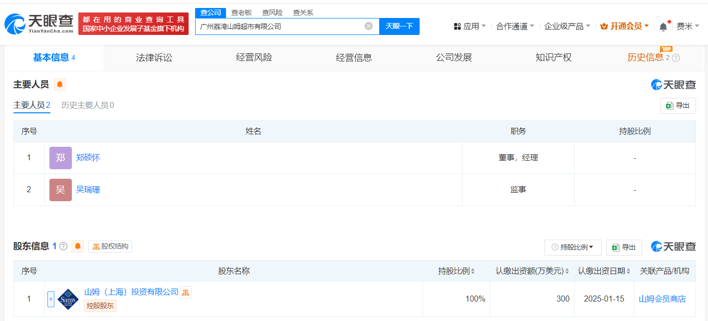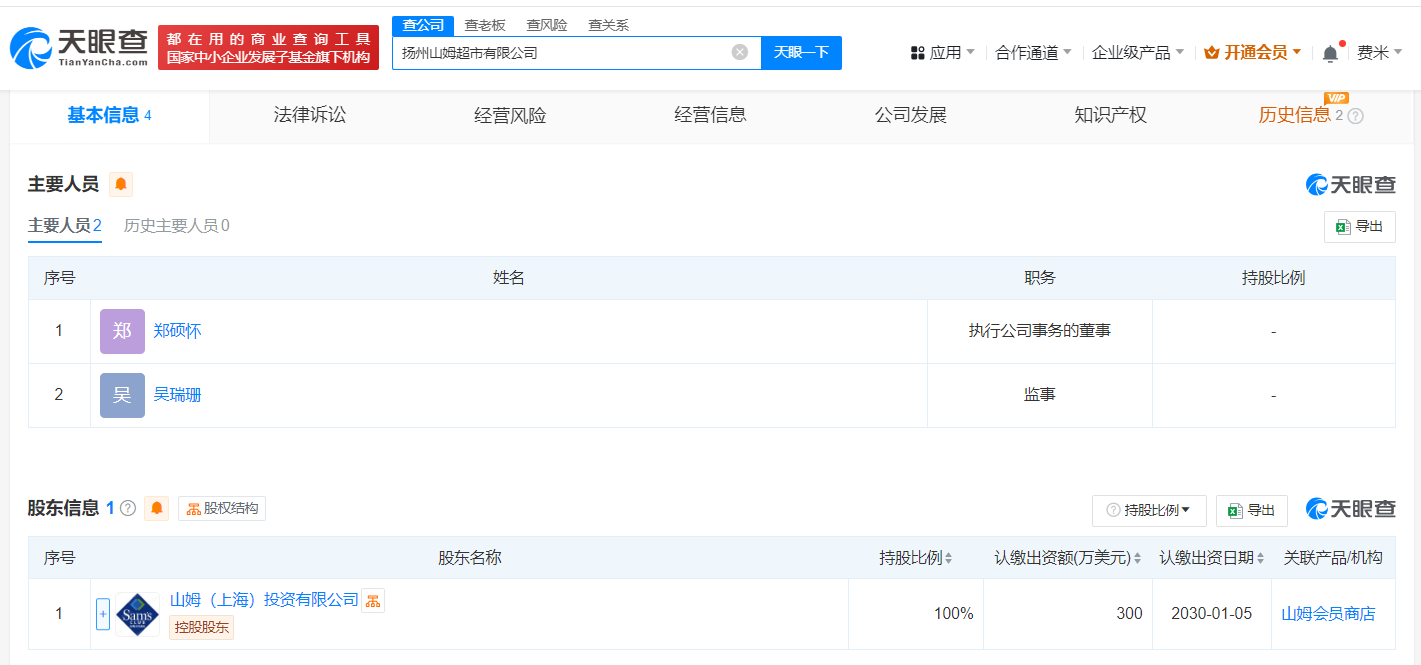 股东结构方面,天眼查数据显示,广州荔湾山姆超市有限公司与扬州山姆超市有限公司均由山姆(上海)投资有限公司全资控股,这标志着山姆超市在国内市场的投资策略持续稳健,致力于通过新店的开设,满足更多消费者的需求。