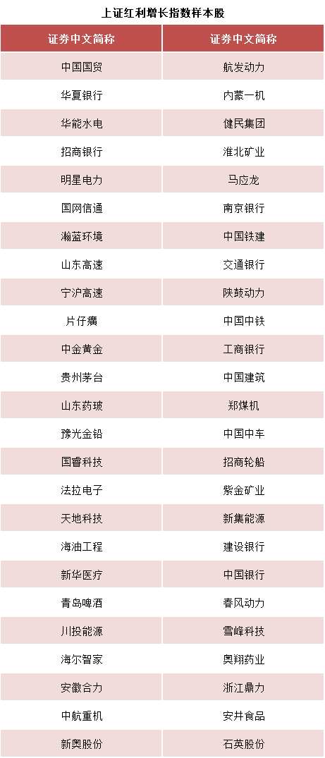 上证红利增长指数与上证180红利增长指数则分别从上证180指数样本空间及样本中筛选出历史分红增长情况优异、分红增长潜力大的上市公司证券作为指数样本,样本数量分别为50只和30只,准确反映相关样本空间内分红连续增长的上市公司的市场表现。
