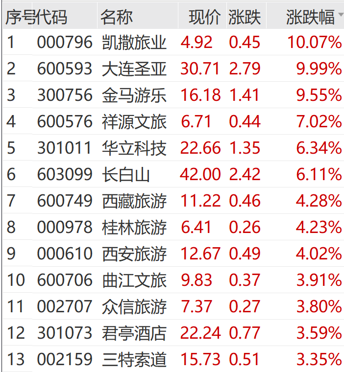 旅游板块整体向好,凯撒旅业、大连圣亚等个股涨停,长白山、西藏旅游等个股跟涨。