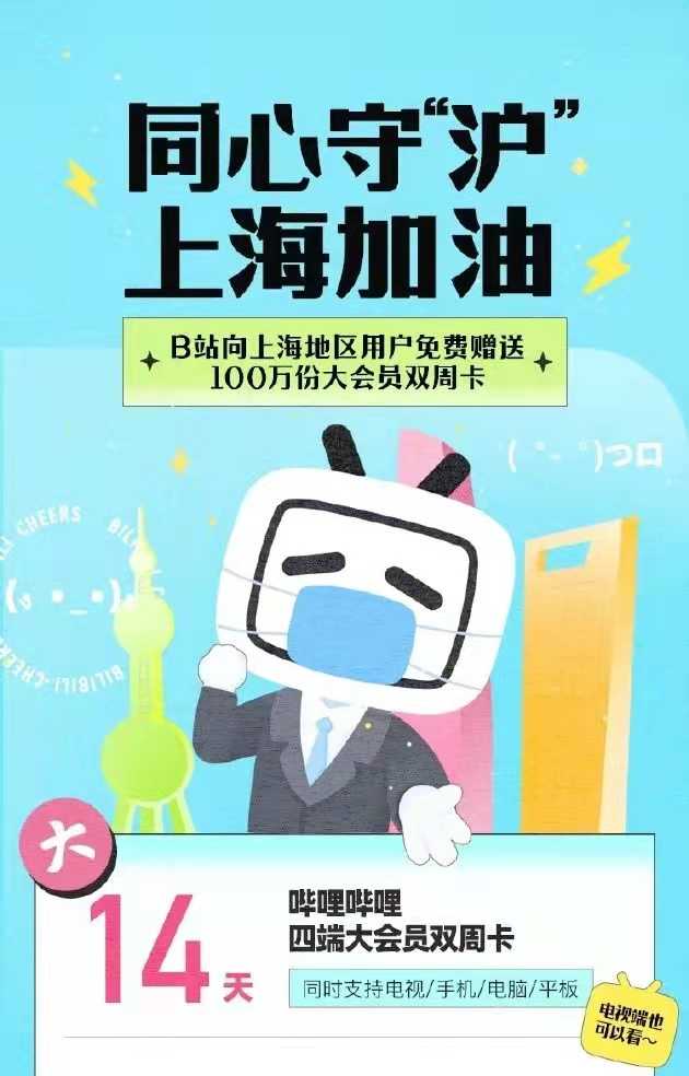 B站作为上海本土企业,积极响应号召,向上海民众赠送了100万份大会员双周卡。此外,B站还计划于3月18日至22日间,免费放映《新喜剧之王》《飞驰人生》等20余部影片,以满足市民在抗疫期间的精神文化需求。