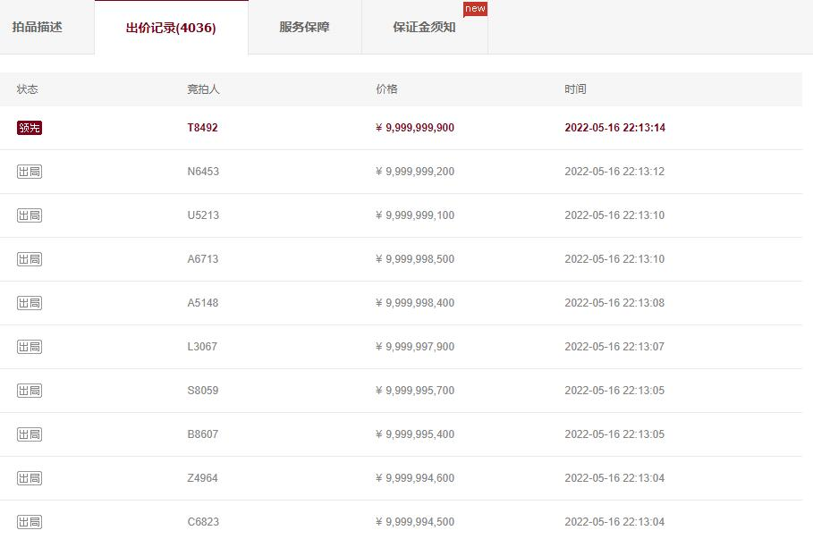 在竞拍过程中,价格从5月12日的3999万元开始,逐渐攀升。到了5月16日晚上21时13分,价格突然从5258万元飙升至52577.79万元,此后更是一路上涨,直至达到近百亿元的天价。这一异常现象引起了商家和平台的注意,阿里拍卖在微博上发文称,发现有用户涉嫌恶意竞拍,导致竞拍价格远超估值,因此商家决定暂时中止本场拍卖。