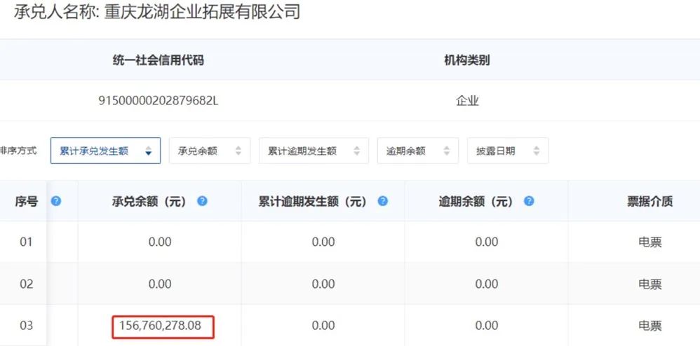 据中国基金报记者查询,与龙湖集团关联的几个商票主体目前确实大都连承兑余额都没有,更不存在逾期和拒付的情况。唯一一个主体“重庆龙湖企业拓展有限公司”(亦是龙湖集团在境内主要发债平台)截至2022年7月31日,承兑余额也不足2亿元,且逾期余额和累计逾期余额均为0。