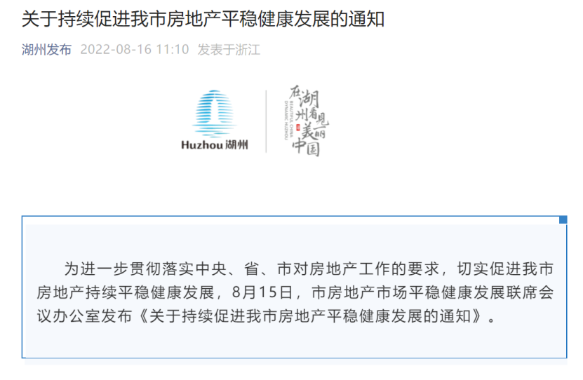 湖州发布稳地产新政:鼓励国企收购滞销房,多孩家庭购房获支持