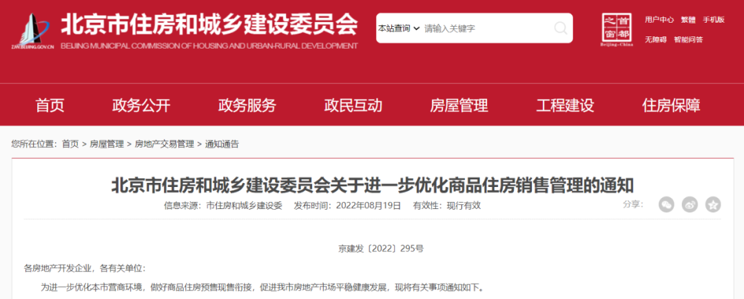 8月19日,北京市住建委正式颁布了针对商品房预售的全新规定,旨在进一步优化商品住房销售管理措施。